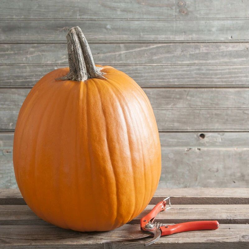 Developed by John Howden of Massachusetts in the early 1970s, it defined “the look” in big Halloween pumpkins — deep orange color, defined ribs, and good handles. Fruits vary in shape and weight, typically averaging 18–26 lb. or larger. While still nice in a good year, the new hybrids are more dependable in quality and yield. Originator’s stock. USDA Certified Organic.