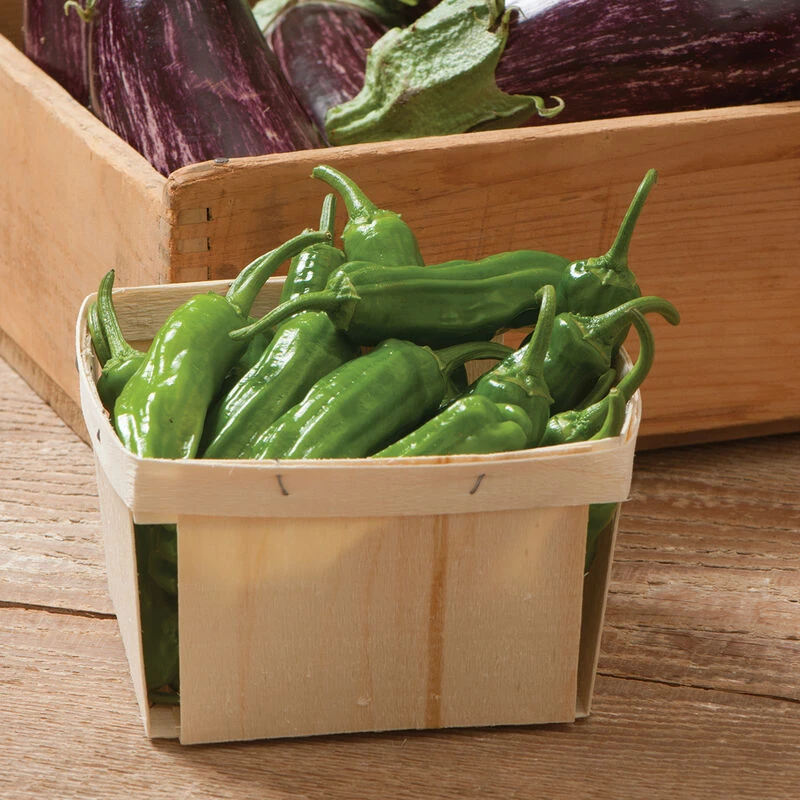 Avg. 3 1/2-4″ heavily wrinkled fruits are thin walled, mild (no heat) when green and slightly sweet when red. Popular in Japan where its thin walls make it particularly suitable for tempura. Also very good roasted, in stir fries, or sautés. In Asia, fruits are always cooked green but they also may be used red. Thinly sliced, the red fruits are excellent in salads and coleslaw. Large, upright plants produce good yields over an extended harvest period.